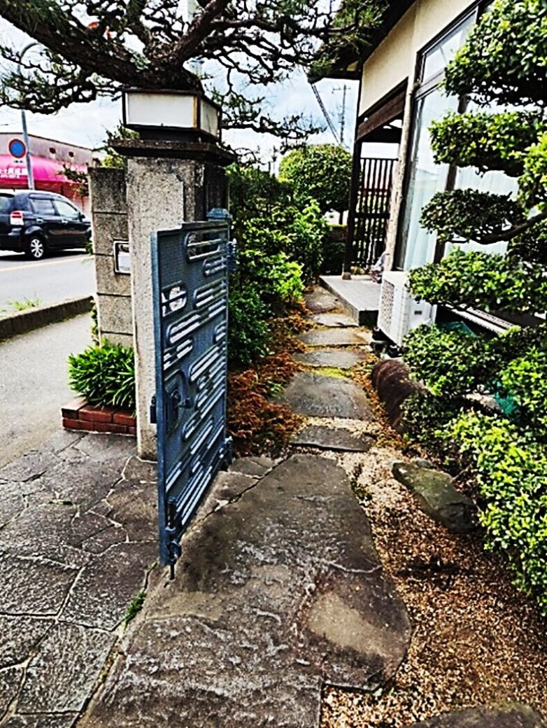 門扉から玄関にかけては立派な飛び石が並ぶ風情あるエントランスです。